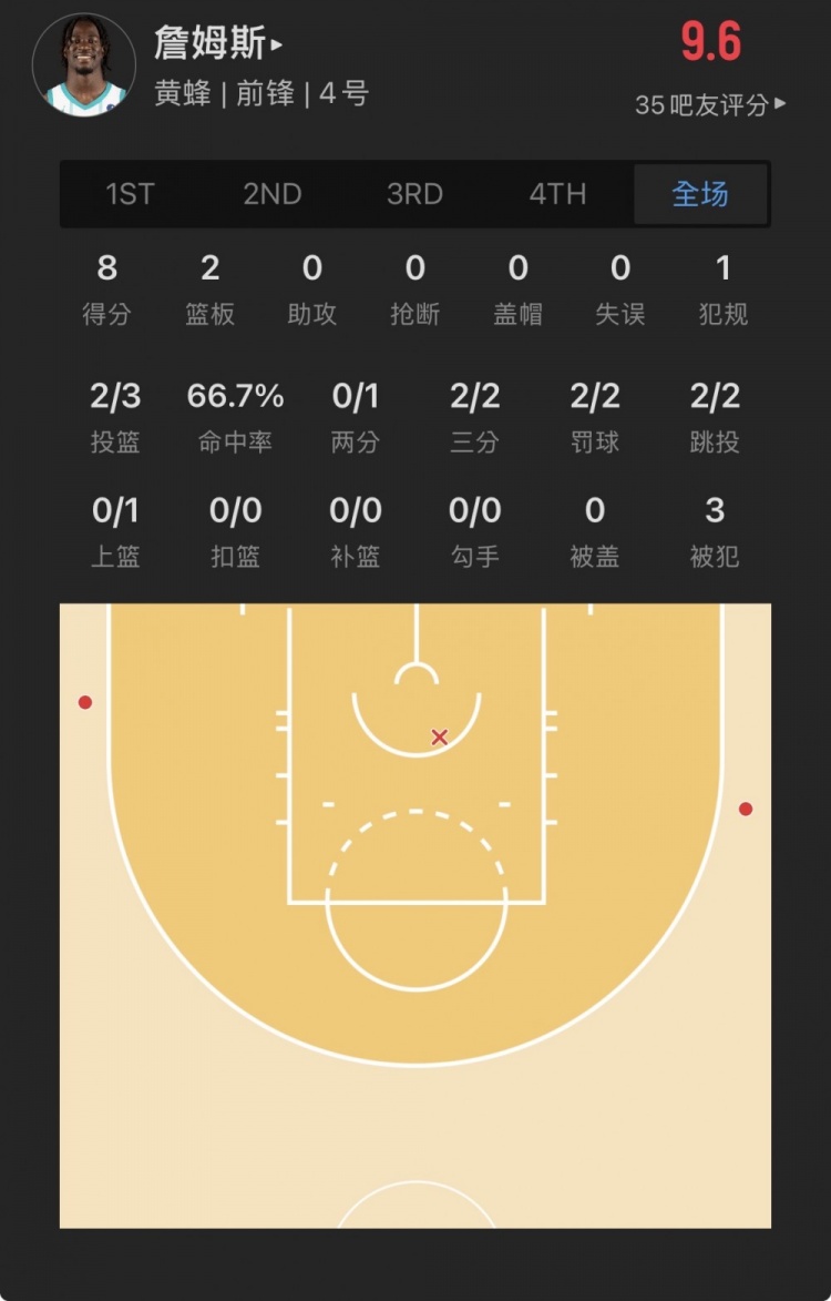 黃蜂33號(hào)秀 賽恩-詹姆斯 登場(chǎng)27.4分鐘