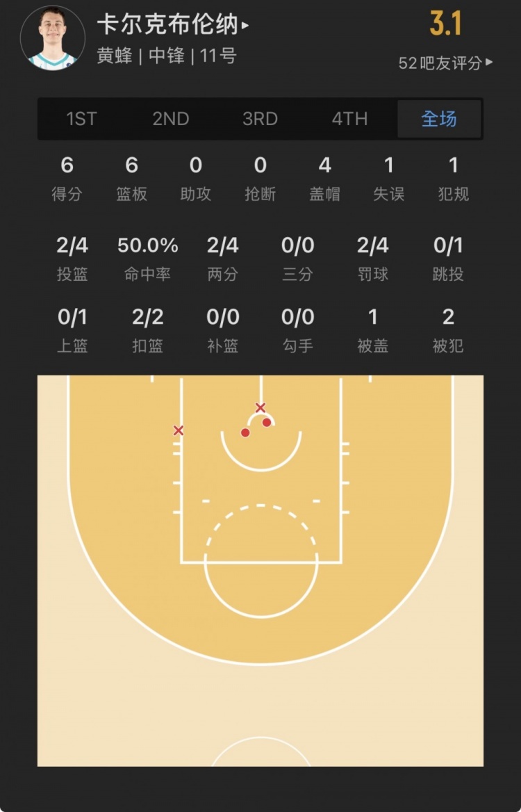 黃蜂34號(hào)秀 瑞安-卡爾克布倫納 登場(chǎng)29.4分鐘