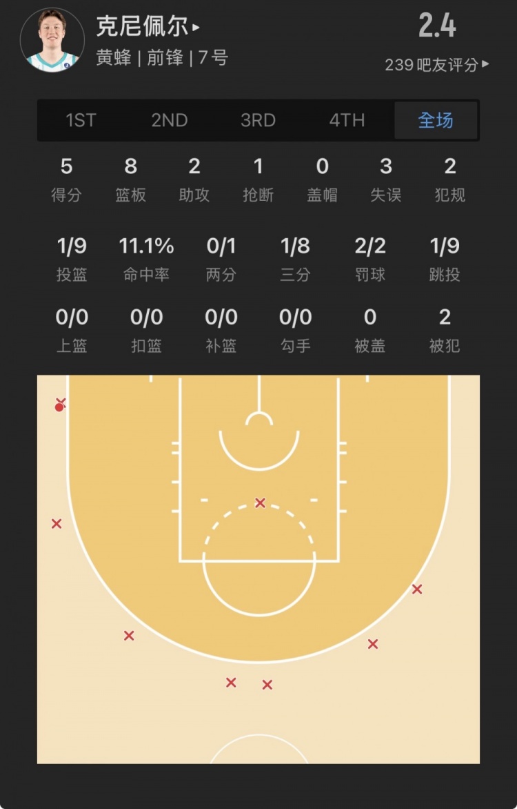黃蜂4號(hào)秀 康-克尼佩爾 登場(chǎng)30.9分鐘