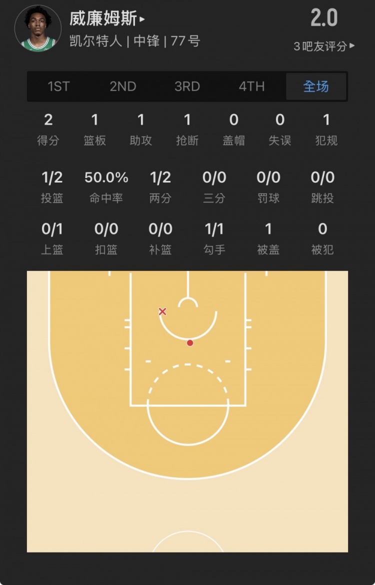 凱爾特人46號(hào)秀 阿馬里-威廉姆斯 登場(chǎng)6.2分鐘